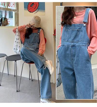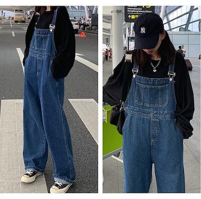 サロペット レディース デニム パンツ オーバーオール サロペットパンツ オールインワン ワイドパンツ 大きいサイズ 体型カバー ゆったり大きめ 楽ちん ゆる リラックス かわいい マタニティ 定 | koookooo