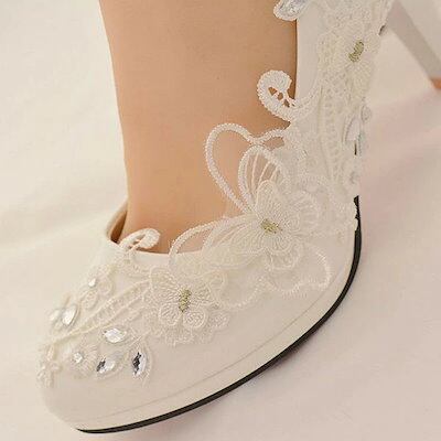 ウエディングシューズ ブライダルシューズ パンプス ヒール8センチ/4.5センチ/ぺたんこ ハイヒール レース 美脚 キラキラ 豪華 パーティー 結婚式 発表会 二次会 大きいサイズ 22.0 22. | koookooo