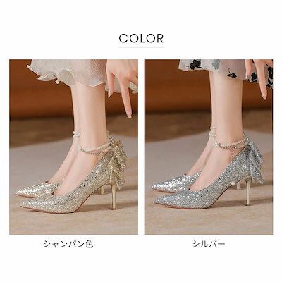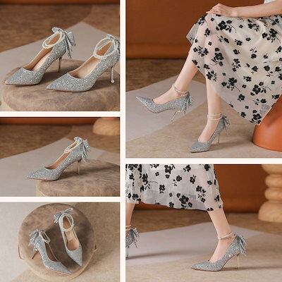 パンプス ハイヒール ピンヒール ストラップ ポインテッドトゥ グリッター キラキラ ラメ レディース 黒 シルバー ブラック 結婚式 二次会 パーティー キャバ 痛くない 歩きやすい 大きいサイズ | koookooo