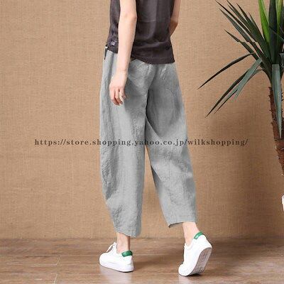 ワイドパンツ ガウチョパンツ 夏 レディース パンツ ボトムス ゆったり 9分丈 無地 夏物 ウエストゴム 大きいサイズ 体型カバー 薄手 40代 50代 春 夏