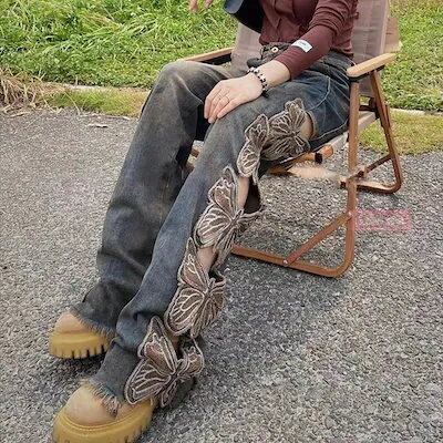 メガ割 25新作 韓国 ハイウエスト 韓国 レディース デニムパンツ ボトムス ワイドレッグ ゆるダボ ジーンズ ゆったり カジュアル ストリート 切りっぱなしカットオフ肌見せ ファッション系 | koookooo