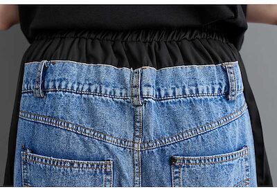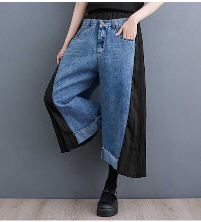 「ファットガール」 秋 九分丈 デニムパンツ ドッキング レトロ プリーツ ワイドパンツ ハイウエスト スラックス レディース ロングパンツ メガ割