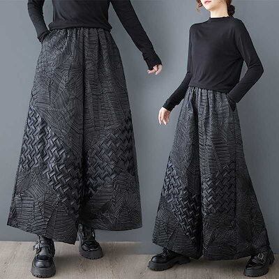 「ファットガール」 2024秋冬新品 ワイドパンツ 編み風 大きいサイズ 体型カバー ハイウエスト ストレート レディース ロングパンツ メガ割