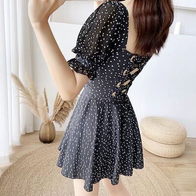 2023insレディ風スリムお腹カバーワンピース水着女性コンサバウェーブポイントスカート温泉水着v
