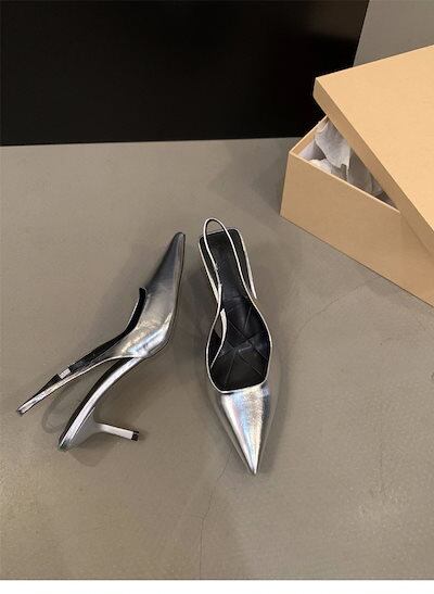 スタイルアップ!ヒールパンプスシルバーハイヒールポインテッドトゥ大きいサイズ包頭サンダル妖精靴2025春夏作フレンチスタイルバック空靴