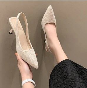 スタイルアップ!ヒールパンプス女性のためのフランスのハイヒールトゥサンダル2025春夏ニッチハイエンドポインテッドトゥスティレット小さな香りのよいスタイルの靴