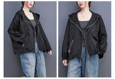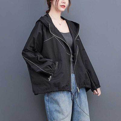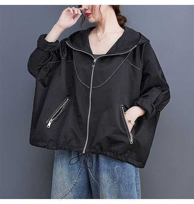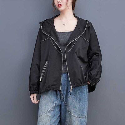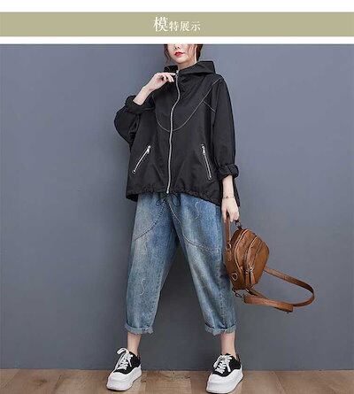 「ファットガール」 2024秋新品 ファスナージャケット 大きいサイズ パーカー フード付き ポケット付き 体型カバー レディース アウター メガ割