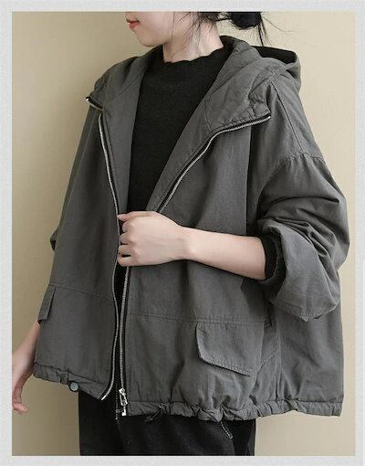 マウンテンパーカー 中綿 アウター フード付き レディース 秋冬 ブルゾン ジャケット トップス 中綿パーカー 羽織り 上着 防寒 厚手 暖か ゆったり 体型カバー あったか グレー ブラック | koookooo