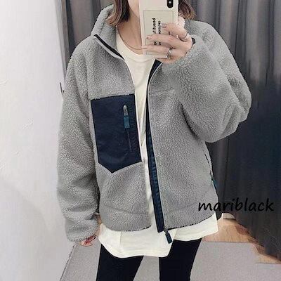 ボアジャケット ボアブルゾン レディース ボアコート アウター 立ち襟 ふわふわ 暖かい ゆったり 可愛い カジュアル シンプル 無地 秋冬