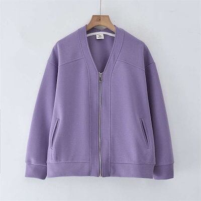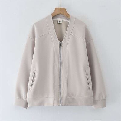 カーディガン ブルゾン ジャケット トップス ライトアウター レディース アウター ノーカラー Vネック ジップアップ ポケット スタジャン コート 羽織り アメカジ 長袖 春 春物 秋 無地 コット | koookooo
