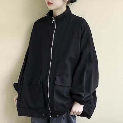 韓国ファッション春秋新作 大きいサイズ アウター レディース フィット アウター ファスナー ジャケット レディース ロングジャケッ