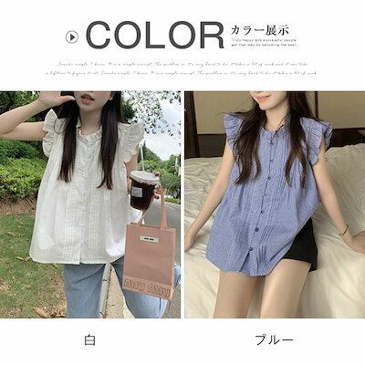 ブラウス 肩フリル レディース ノースリーブ シャツブラウス トップス 白シャツ 袖なし シャツ 前開き インナー ボタン タンクトップ お洒落 可愛い カジュアル 無地 チェック柄 シンプル ゆった