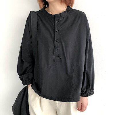 バンドカラー シャツ ブラウス 長袖 無地 裾ドロスト ハーフボタン 秋 春 冬 シャツブラウス レディース ブラウス プルオーバー トップス 白シャツ 長袖シャツ 大きいサイズ 上品 きれいめ フォ | koookooo