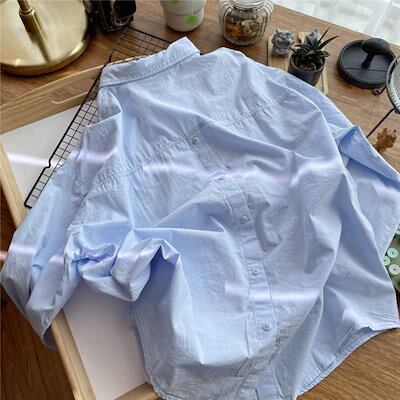 長袖 シャツ レディース 長袖シャツ 綿 柔らかい シャツブラウス トップス 羽織り 春 秋 冬 シンプル 大人 おしゃれ 背中 ボタン 切り替え 体型カバー ゆったり ゆる リラックス 大きいサイズ | koookooo