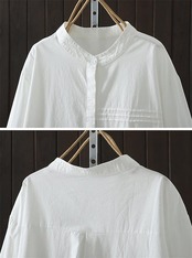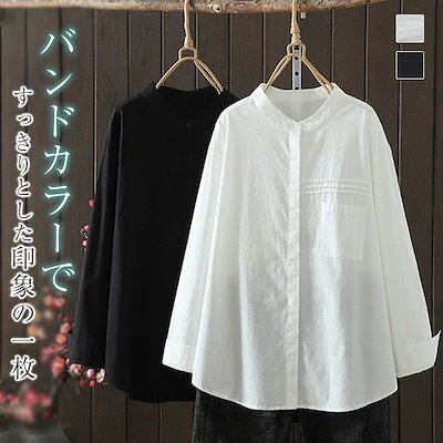 バンドカラー シャツ ブラウス 長袖 無地 切り替え 胸ポケット付き 秋 春 冬 シャツブラウス レディース ブラウス 前開き ボタン トップス 白シャツ 長袖シャツ 大きいサイズ 上品 きれいめ フ | koookooo