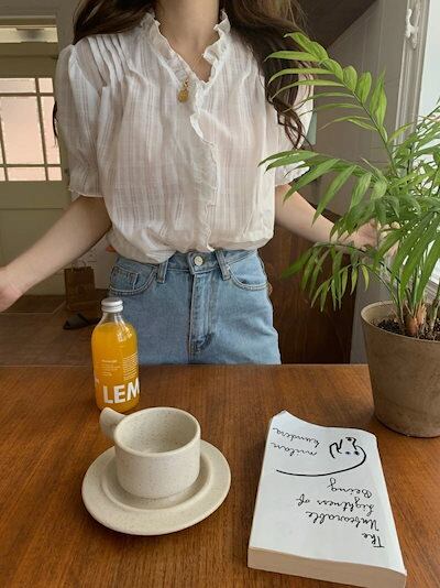 シャツ 半袖 大きいサイズ レディース 白シャツ 羽織り シャツブラウス フリル襟 バルーン袖 パフスリーブ ボリューム袖 チェック柄 フリル 袖 トップス ホワイト ボタン 前開き 羽織 羽織もの | koookooo