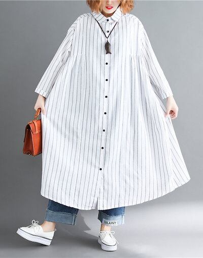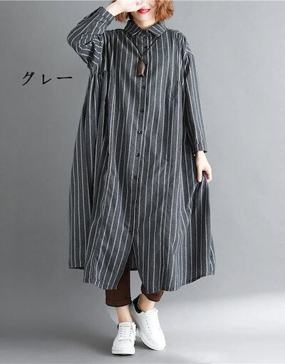 ストライプシャツ レディース 長袖 ロングシャツ 夏 開襟 折り襟 ボタン留め 長袖シャツ 薄手 カーディガン ゆったり カジュアルシャツ ロング ドロップショルダー 羽織り アウター ライトアウター | koookooo