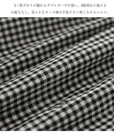 シャツ レディース キンガムチェック ストライプ 千鳥格子柄 ガーゼ トップス 長袖 襟付き 小襟 ボタン留め 前開き 綿 シャツブラウス 可愛い チェック柄 ダブルガーゼ 折襟 レギュラカラー カジ | koookooo