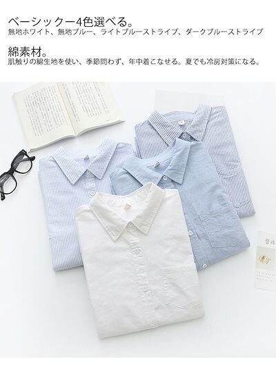 ストライプシャツ レディース 長袖 ストライプ シャツ 綿 コットン トップス レギュラーシャツ 無地 ブラウス 長袖シャツ 羽織り 前開き ボタン 襟付き カジュアル シンプル ワイシャツ 着回し | koookooo