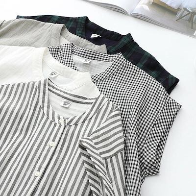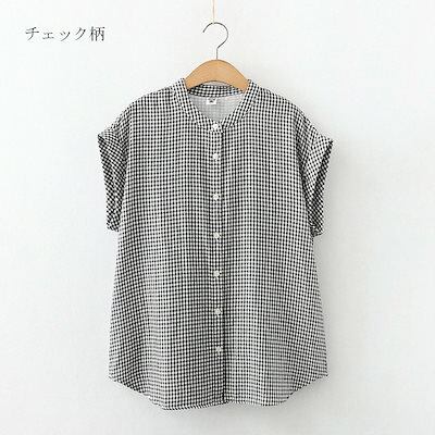 シャツ レディース 夏 綿 ノースリーブ シャツトップス ガーゼ 無地 ホワイト ストライプ柄 チェック柄 チェックシャツ 短袖 立ち襟 シャツブラウス ボタン留め 通気性 コットン 柔らか ゆったり | koookooo