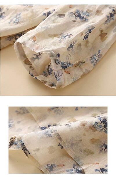 リネン シャツ ブラウス 半袖 レディース シャツブラウス 大きいサイズ Vネック 五分袖 フリル 夏ブラウス 麻 タック入り ボタン プルオーバー ゆったり ふんわり 薄手 トップス 花柄 通気性良 | koookooo