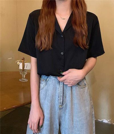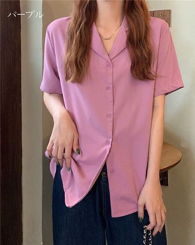 シャツ シフォン レディース 夏シャツ 半袖 Vネック 前開け ボタン止め 半袖シャツ 無地 ゆったり カジュアル トップス ボックスシルエット コーデ 体型カバー 涼しい 快適 カラーシャツ 全7色 | koookooo