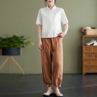 半袖シャツ レディース 襟付き シャツ ブラウス 半袖 シャツブラウス トップス 夏 半袖ブラウス 前後差 スリット 白シャツ ホワイトシャツ 綿混 無地 シャツ チビ襟 ダブルボタン 大きいサイズ | koookooo