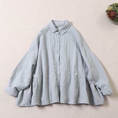 シャツ ブラウス レディース 長袖 春 秋 トップス フレア 綿麻 長袖 シャツ ボタンあり Aライン フェミニン 着回し シンプル おしゃれ 大人 カジュアル こなれ感 ビックシルエット 早春 オフ | koookooo
