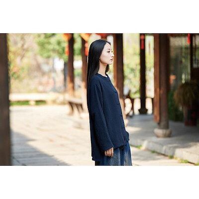 シャツ 綿麻シャツ シャツブラウス トップス レディース ブラウス 前開き 40代 Uネック ボタンデザイン 長袖 亜麻 麻 アウター シンプル きれい 優雅