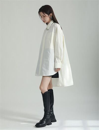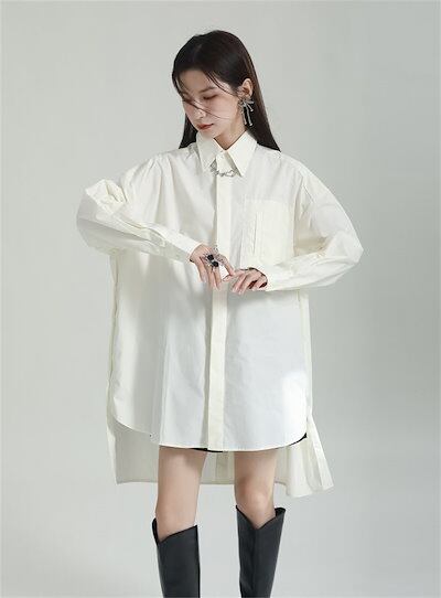 バックボタンシャツ シャツ レディース 春 秋 綿 トップス 長袖 モード系 変形アシメシャツ ブラウス 羽織り 襟付き ロング丈 変形 イレヘム 無地 個性的 ユニセックス 大人 カジュアル ゆった | koookooo