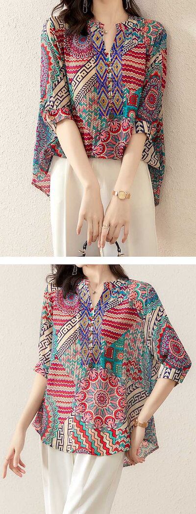 シャツ ブラウス レディース シャツブラウス 半袖 春 夏 秋 花柄 柔らか 総柄 花柄シャツ ふんわりトップス 着心地 前開き おしゃれ 体型カバー シンプル カジュアル 大人可愛い お出かけ 日常 | koookooo