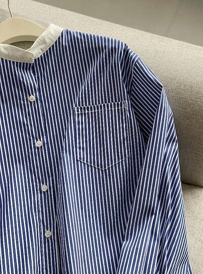シャツ ブラウス レディース ストライプ シャツ 春 夏 秋 スタンドカラー トップス 半袖 フェミニン 着回し シンプル おしゃれ 大人 カジュアル こなれ感 春 夏 上品 オフィス フォーマル ビ | koookooo