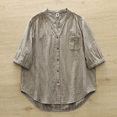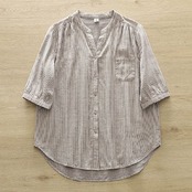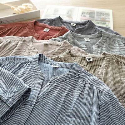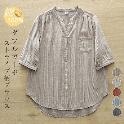 ダブルガーゼ シャツ ブラウス レディース ストライプ柄 綿 半袖 春 夏 秋 トップス ガーゼ 半袖 薄手 フェミニン 着回し シンプル ナチュラル 大人 バイカラー カジュアル こなれ感 森ガール | koookooo