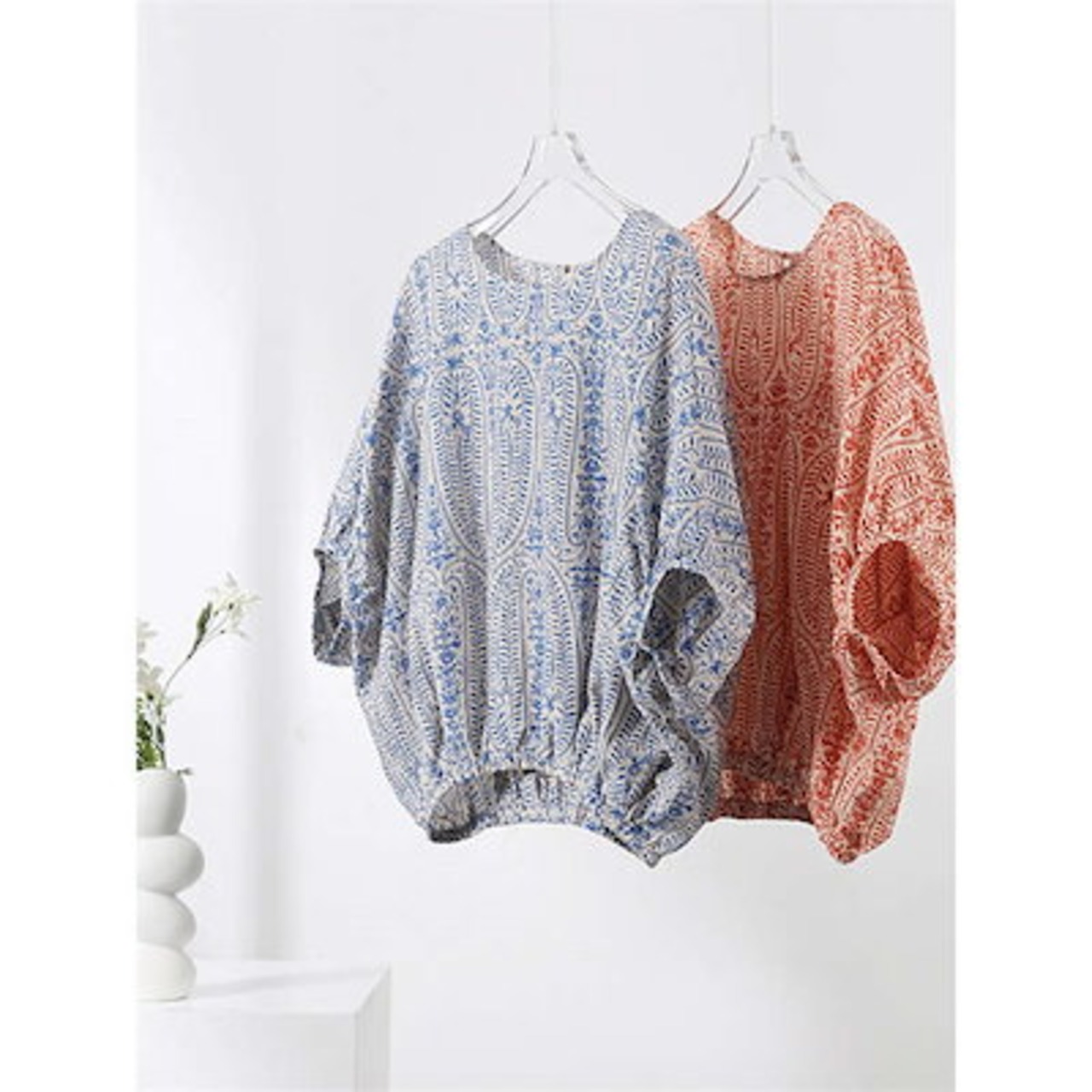 ブラウス レディース ドルマン Tシャツ 春 夏 秋 花柄 トップス 半袖 着回し シンプル おしゃれ 大人 カジュアル こなれ感 春 夏 大きいサイズ 薄手 カジュアル ゆったり 大きいサイズ 肌触 | koookooo