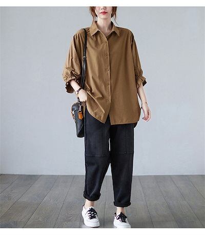 シャツ ブラウス レディース トップス 春 カーディガン 七分袖 半袖シャツ カットソー アウター 羽織 シャツブラウス 無地 フリル 大きいサイズ 綿 コットン シャツ 夏 30代 大きいサイズ オ | koookooo