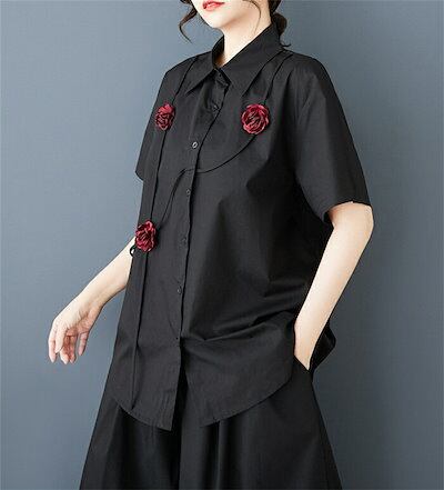 シャツ レディース 春夏 半袖 シャツブラウス 花 折襟 前開き 羽織 仕事 ブラウス 上着 仕事 オフィス トップス ゆったり 大きいサイズ 体型カバー 着?せ お洒落 可愛い 着回し 通勤OL | koookooo
