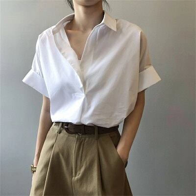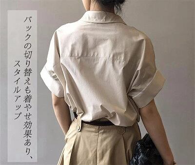 シャツ シャツブラウス レディース 春夏 半袖 ブラウス Vネック プルオーバー 無地 オフィス 仕事 トップス ゆるシャツ 大きいサイズ ゆったり 体型カバー 着痩せ おしゃれ きれいめ 通勤OL | koookooo