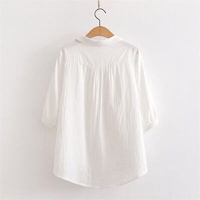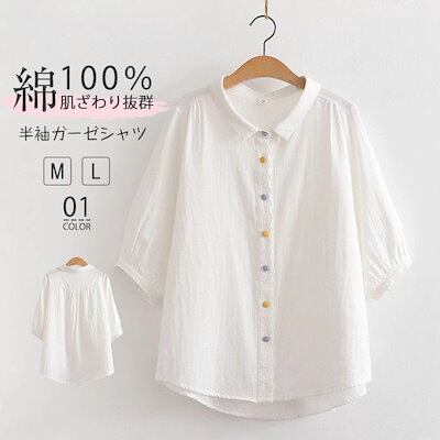ガーゼ シャツ レディース 半袖 2重ガーゼ 綿 シャツブラウス トップス 春 夏 レース切替え 羽織り 大人 カジュアル ナチュラル ダブルガーゼ 体型カバー ゆったり 刺繍 通勤 ガーゼコットン着 | koookooo