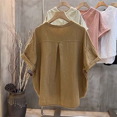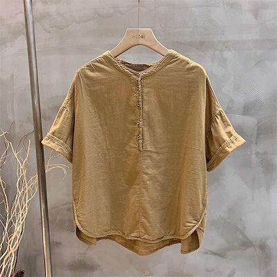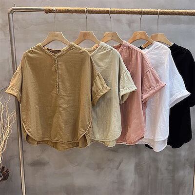 ガーゼ シャツ Tシャツ ブラウス レディース ガーゼシャツ 綿シャツ 無地 ダブルガーゼ トップス 半袖 綿 ゆったり キレイめ 春 ゆるシルエット フォーマル 綿麻風 カジュアル ビジネス 事務 | koookooo