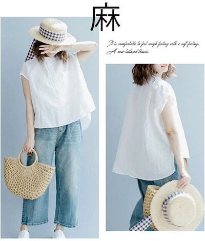 綿麻 半袖 ブラウス レディース リネンシャツ 無地 ゆったり スキッパー ミドル丈 綿麻ブラウス 薄手 カーディガン 半袖シャツ クールネック トップス tシャツ 春夏 春服 夏服 シンプル カジ | koookooo