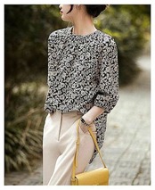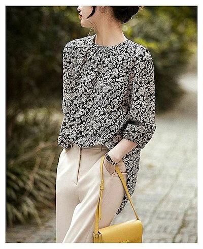 ブラウス レディース 七分袖 トップス ゆったり シャツ プルオーバー 5分袖 チュニック ロングtシャツ バルーンスリーブ 大きいサイズ ゆったり 春夏 大人可愛い きれいめ 体型カバー 総柄 送 | koookooo