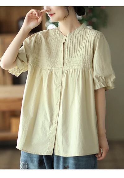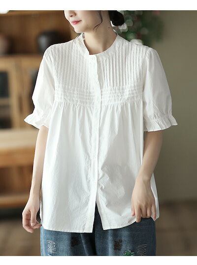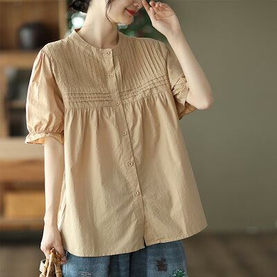 オフェスシャツ ブラウス レディース 半袖 夏 シャツブラウス レディース 春夏 レディース トップス 半袖 ボリューム袖 無地 白シャツ トップス 大きいサイズ ゆったり 体型カバー オフェス カジュアル | koookooo
