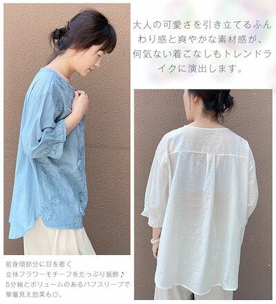 コットン トップス レディース パフスリーブブラウス ワイド ブラウス 半袖 チュニック シャツ とろみブラウス パフスリーブ 春夏 おしゃれ ナチュラル 七分袖 体型カバー 大人 可愛い | koookooo