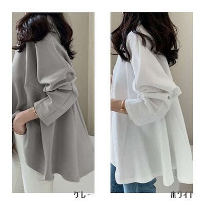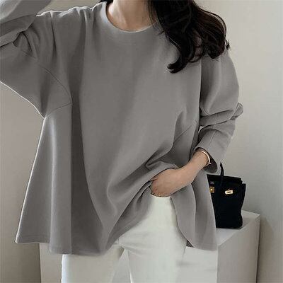 ロンT トップス レディース カットソー インナー Tシャツ 綿 コットン 長袖Tシャツ ロング チュニック ラウンドカットソー モックネック クルーネック 丸首 長袖 無地 シンプル ゆったり 春 | koookooo