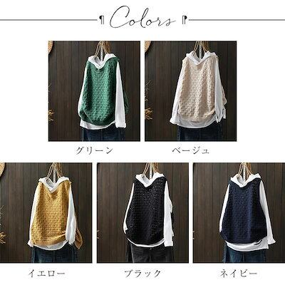 ニットベスト レディース ニット トップス ベスト ノースリーブ 透かし編み クルーネック シンプル レイヤード 重ね着 無地 セーター カジュアル 大人可愛い 女性 お出かけ オシャレ ゆったり 春 | koookooo