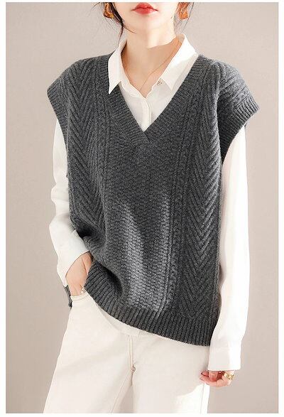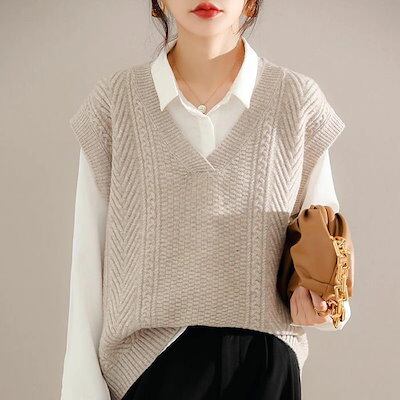 ケーブルニット ベスト レディース ニットベスト vネック 無地 トップス ノースリーブ ニットカーディガン 重ね着 レイヤード ゆったり 大人 カジュアル 春 秋 冬 きれいめ おしゃ | koookooo