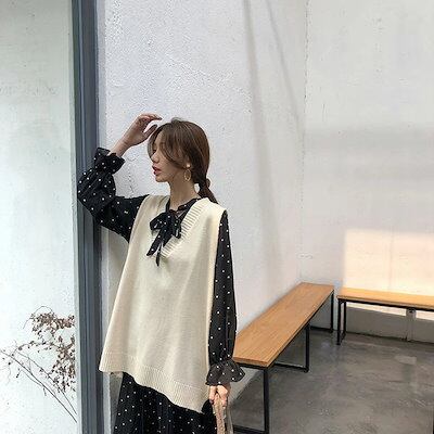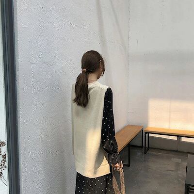 ニットベスト レディース ニット ベスト トップス ノースリーブ ロング丈 Vネック シンプル 無地 カジュアル レイヤード 重ね着 大人 可愛い 女性 お出かけ オシャレ ゆったり 春 秋 冬 | koookooo
