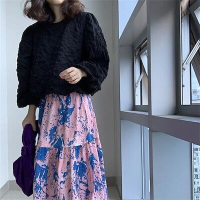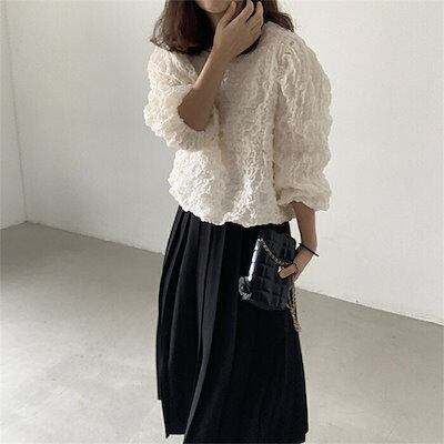 ブラウス レディース 長袖 きれいめ 春 秋 ボリューム袖 エンボス加工 トップス おしゃれ 春 夏 秋 カットソー Tシャツ フェミニン 着回し 体型カバー ゆったり ジャカード素材 シンプル おし | koookooo