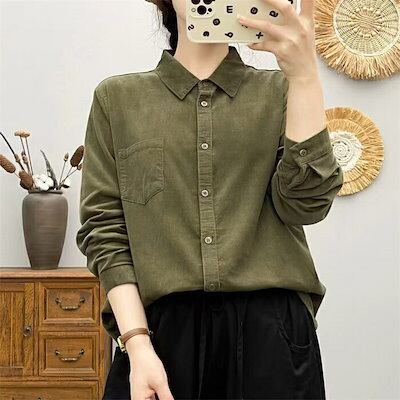 シャツ コーデュロイ レディース コーデュロイシャツ 長袖 長そで 前開き 折襟 秋冬 春 シャツブラウス ブラウス 無地 厚手 インナー レイヤード 重ね着 大きいサイズ ゆったり 秋 冬 暖かい | koookooo