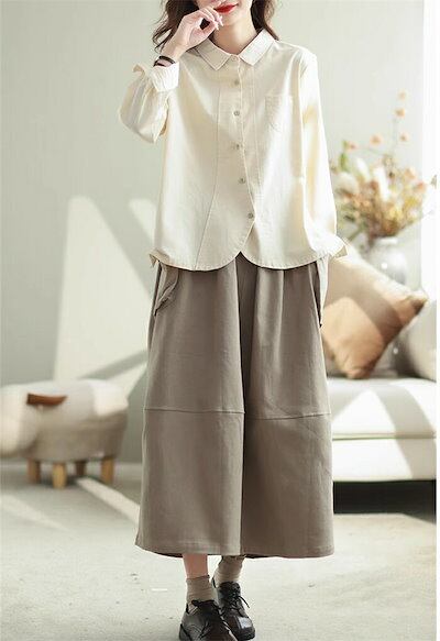 シャツブラウス レディース 長袖 アシンメトリーシャツ トップス シャツ ブラウス 無地 春 夏 秋 新作 襟付き シャツブラウス 着回し カジュアル トラッド レトロ 森ガール ガーリー モード 通 | koookooo